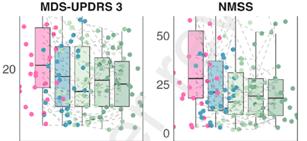 Medication can mask symptoms, which makes UPDRS III assessments difficult to compare, for two reasons. For participants who were on medication (28 out of 31), if they were taking medication at the time of assessment, it is not clear whether the clinical assessments were conducted during on or off states. Also, for a true assessment of Parkinson’s symptoms, participants would ideally cease from taking medications for a period before the assessment, so that the unmedicated Parkinson’s baseline could be assessed. The report does not discuss how the assessments were carried out or under what conditions. This is another way in which medications may have influenced symptoms without being detected by statistical analysis.
