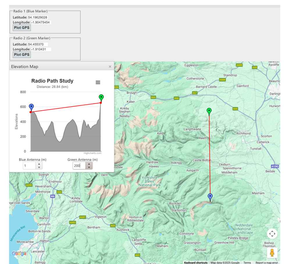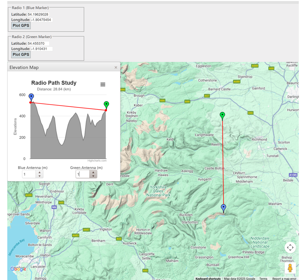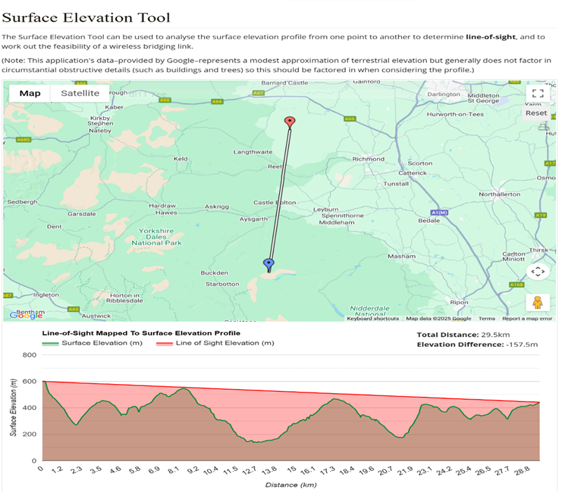 Figure 5: Line of sight from Little Whernside to top of wind turbine